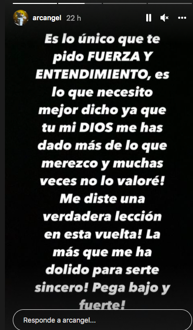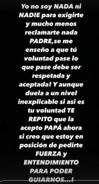El músico finalizó su reflexión con: “Y aunque duela a un nivel inexplicable, si es así tu voluntad te repito que la acepto Papá. Ahora si creo que estoy en posición de pedirte fuerza y entendimiento para poder guiarnos…!”.
