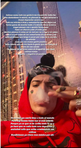 "Toda esa mierda que tiran y los comentarios que me dejan con las ganas de mandar todo a la mierda (...) Muchos piensan que estoy así de mal por la droga y no saben que es culpa de sus comentarios perkines y de tantos problemas que tengo que pasar por la envidia", aseguró el intérprete de "Dímelo Ma".