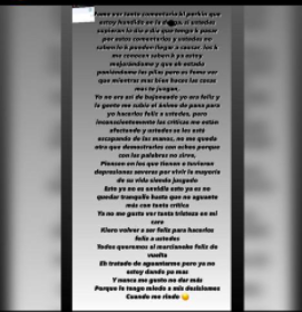 Tras ello, subió otra historia a su cuenta de Instagram, aunque posteriormente la borró. "Ya no me gusta ver tanta tristeza en mi cara. Quiero volver a ser feliz para hacerlos felices a ustedes. Todos queremos a Marcianise feliz de nuevo", agregó el artista.