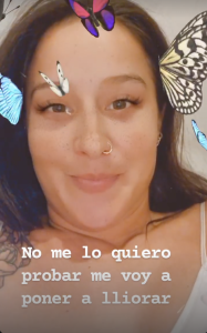 "¡Llegó! No me lo quiero probar, me voy a poner a llorar", escribió en su publicación. Posteriormente, le confesó a sus fanáticos: "Me da nervios. ¿Si no me queda tan bien? ¿Es la ansiedad?".