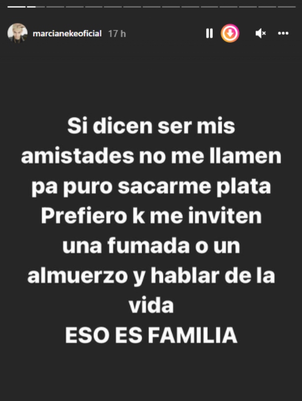 "Si dicen ser mis amistades no me llamen pa’ puro sacarme plata (sic.). Prefiero que me inviten una fumada o un almuerzo y hablar de la vida. Eso es familia", fue parte de lo que escribió Matías Muñoz.