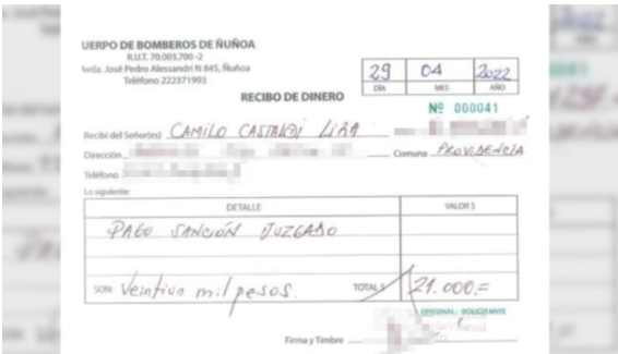 Asimismo, la justicia decretó que dicho dinero fuese dondado, por lo que Castaldi decidió entregarla al Cuerpo de Bomberos de Ñuñoa.