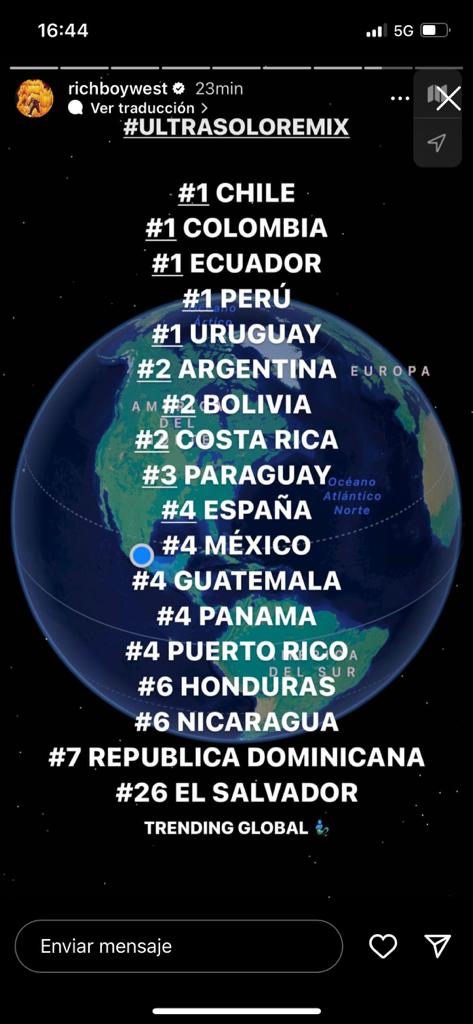 "Ultra feli" escribió el intérprete de "Bon Voyage" en una historia para compartir su emoción por el remix que sacó junto a otros cantantes, canción que obtuvo "Debut Global" en la industria musical y actualmente es Top 1 de Spotify Chile y llegó al número 32 de melodías más escuchadas mundialmente en la misma plataforma.