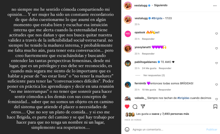 La cantante nacional, Vesta Lugg compartió en sus redes sociales una potente reflexión acerca del significado de ser mujer en la sociedad actual.