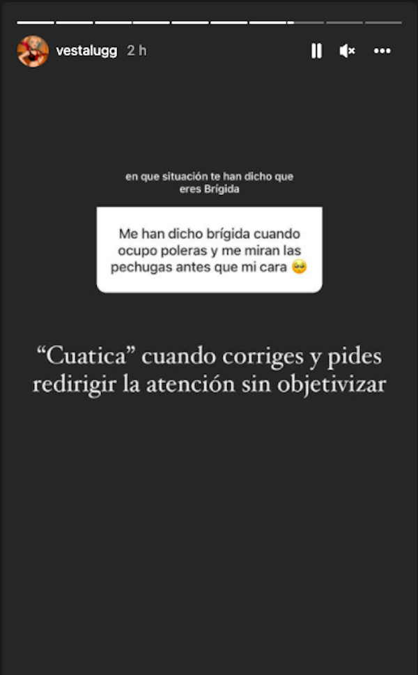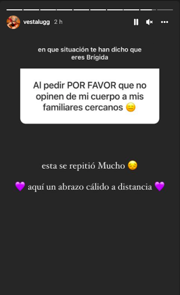 La cantante finalizó su mensaje con una profunda frase en contra del sistema patriarcal. “Saber que no somos un objeto en el camino del sistema que atiende el placer o necesidades de otros… que no soy un plato de comida y si eso me hace brígida, es parte del camino”, detalló.
