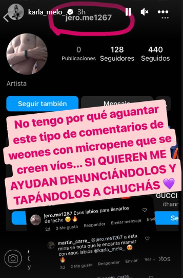 “Esos labios para llenarlos de leche”, le comentó uno en una de sus fotografías, mientras que el otro señaló “a esta mina se nota que le gusta mamar con esos labios”, lo que generó la molestia de la también cantante.