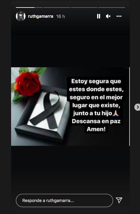 La modelo paraguaya posteó una fotografía en negro y plasmó:"estoy segura que estés donde estés, seguro en el mejor lugar que existe, junto a tu hijo. Descansa en paz". Asimismo, pidió respeto por el complejo momento.