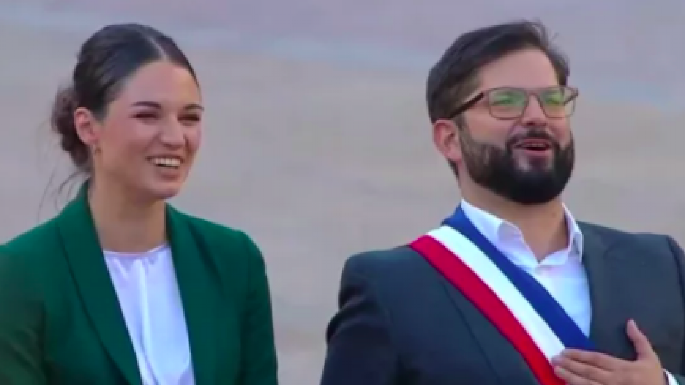 ¡En pleno himno nacional! La particular razón que generó la risa de Gabriel Boric e Irina Karamanos en el cambio de mando