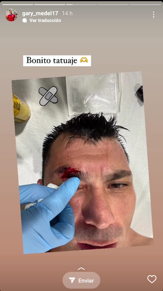 Tras el partido, el Bicampeón de América compartió una foto en sus redes sociales con el corte que sufrió y la posterior venda que le aplicaron. Todo, con la leyenda "bonito tatuaje".