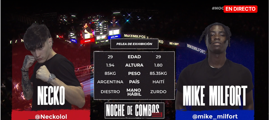 Quinto combate: (internacional) Argentino Nicolás Seewald (Necko) vs. Mike Milfort