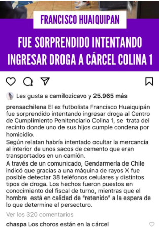 El futbolista Francisco Huaquipán fue detenido tras intentar ingresar droga y celulares a la cárcel Colina 1, situación que no dejó indiferente a nadie, entre ellos, Juan Lacassie, más conocido como "Chispa".