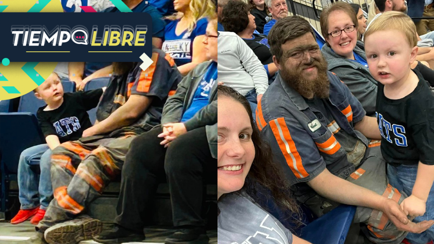En Estados Unidos, un minero se convirtió en viral luego de que fuera fotografiado acompañando a su hijo a un partido de basquetbol, vistiendo la ropa de trabajo e incluso con carbón en la cara.