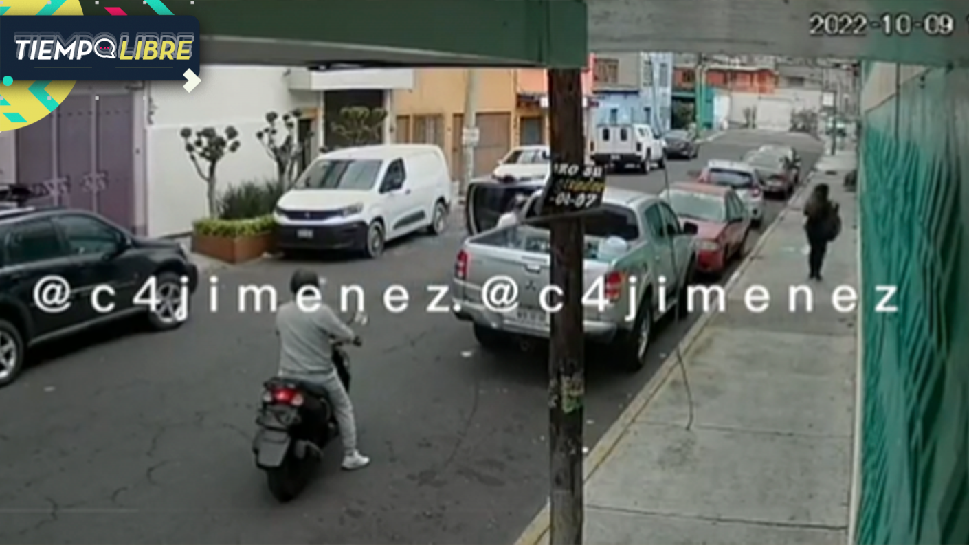 En Iztapalapa, México, un arriesgado conductor frustró el robo a una mujer luego de atropellar a los motochorros.