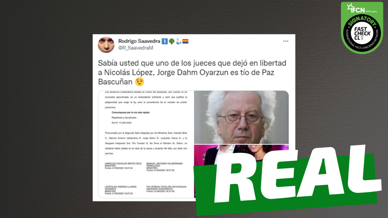 El pasado viernes 17 de junio, el medio de comunicación, Fast Check Chile, afirmó el lazo familiar que tiene Jorge Dahm Oyarzún, Juez de la Corte Suprema, con la actriz, Paz Bascuñán. Esto en el contexto de que el 1 de junio de este año, se aprobó el recurso de amparo para el director de cine, Nicolás López, quien fue condenado por cinco años y un día por haber abusado sexualmente a dos mujeres.