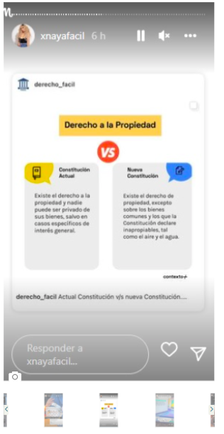 Por medio de sus historias de Instagram chilena, la influencer chilena, Naya Fácil se defendió de las críticas tras caer en una fake news acerca de la Nueva Constitución. Afirmó que solo hizo una consulta y no que tomó postura por una opción de cara al plebiscito del próximo 4 de septiembre.
