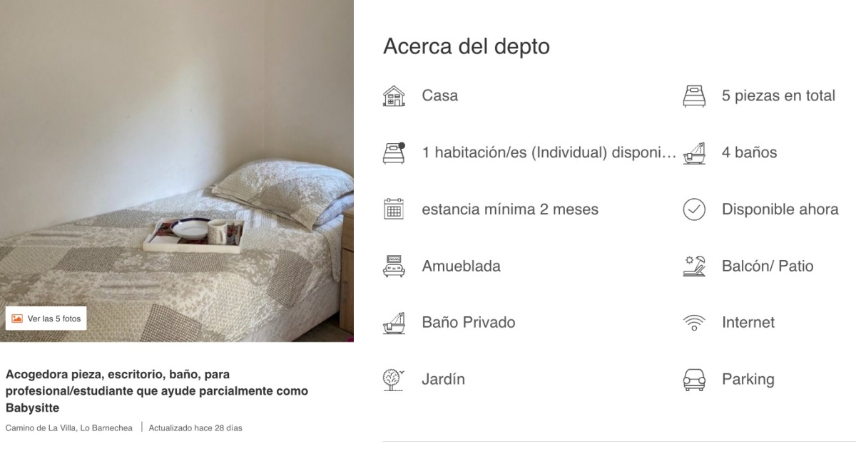 El medio nacional, BioBioChile, habló con la persona que realizó el anuncio y detalló: “Tengo tres niños, a los que cuido y me es muy difícil. No tengo asesora. Pensé que alguien podría interesarse en arrendar una pieza, baño, sala, patio, estacionamiento y apoyarme en los desayunos con los peques”.