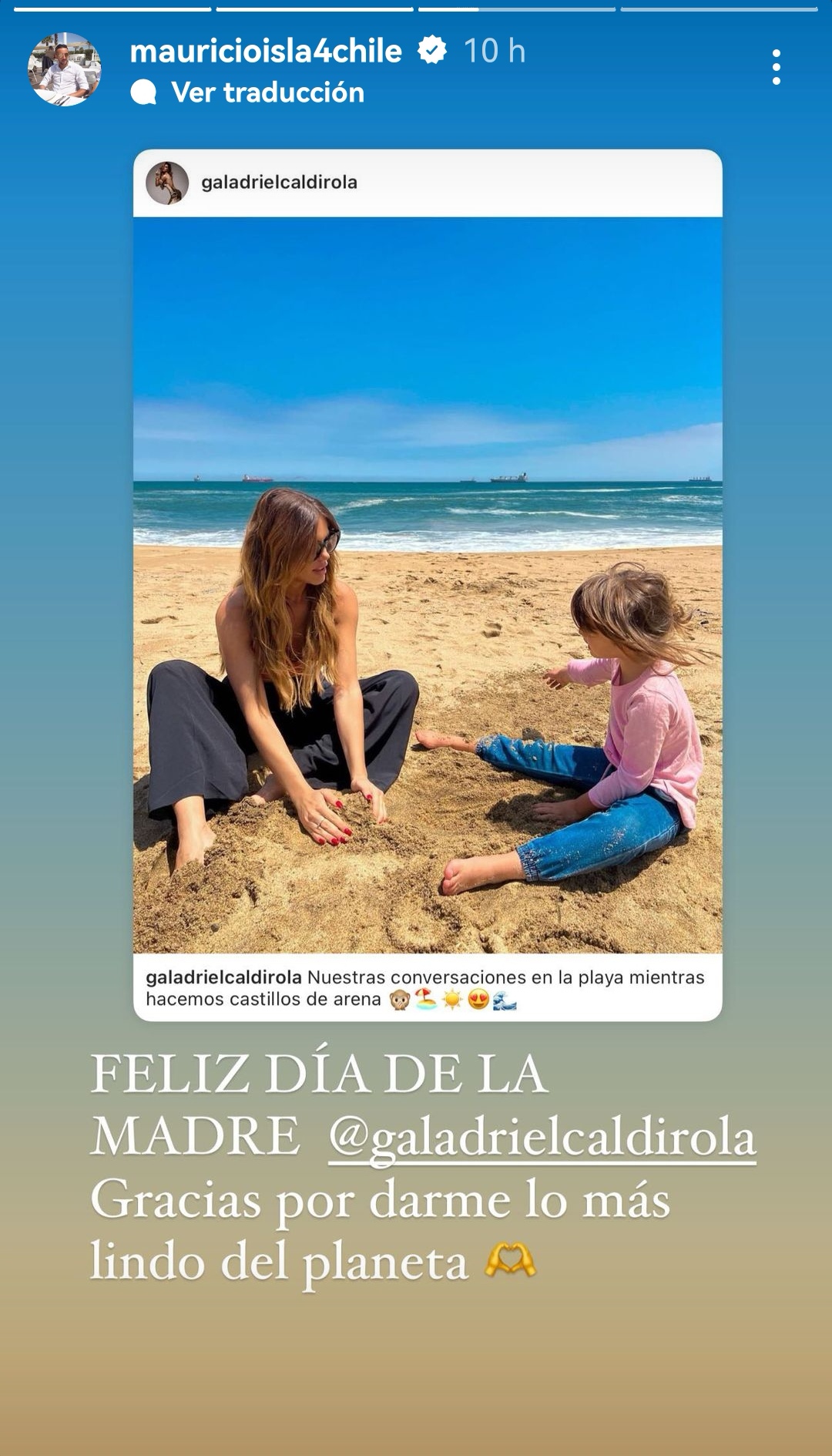 “Feliz Día de la Madre, Gala. Gracias por darme lo más lindo del planeta”, escribió Mauricio Isla en sus historias.