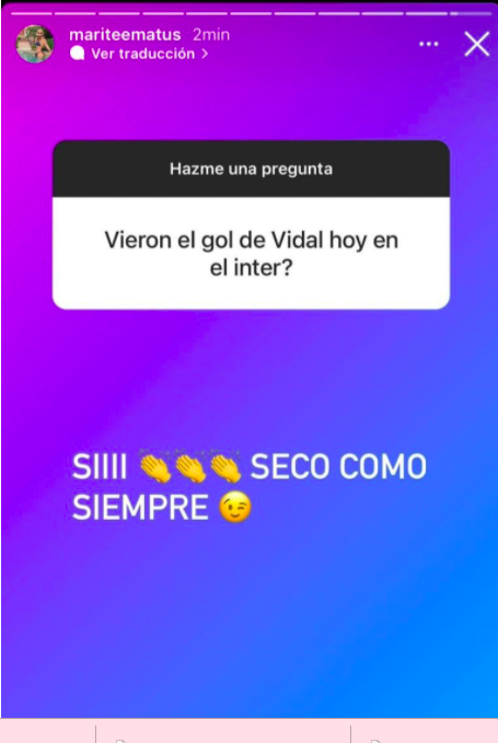 Marité Matus, la ex señora de Arturo Vidal, tuvo un tierno mensaje de apoyo para el futbolista del Inter de Milán a través de su Instagram.