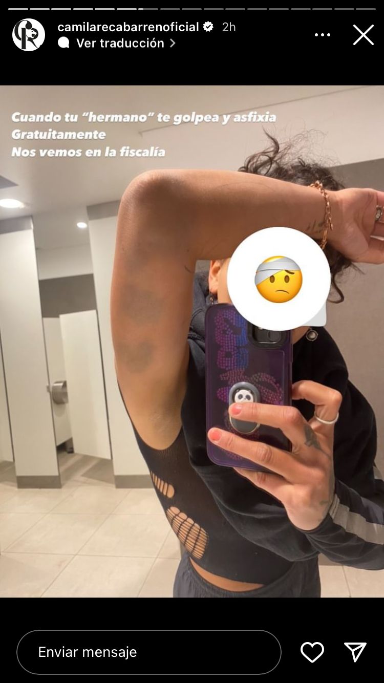 Camila Recabarren usó su cuenta de Instagram para denunciar un supuesto ataque por parte de un cercano, afirmando que este habría intentado asfixiarla.