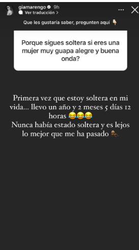Tras ello, Marengo compartió la respuesta de sus seguidores, quienes todavía extrañan a la pareja que finalizó su relación hace cerca de siete años. Ante esto, la influencer subió una foto de su cara sorprendida.