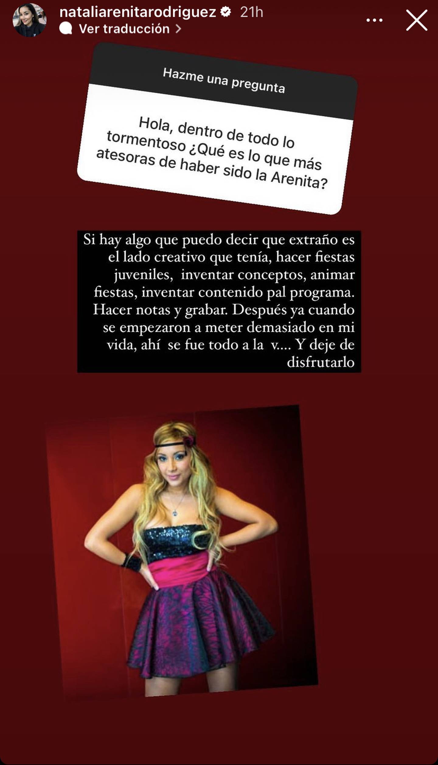 La influencer Natalia Rodríguez, quien se hizo conocida en el extinto programa juvenil Yingo como Arenita, habló sin filtro sobre esa época en sus redes sociales.