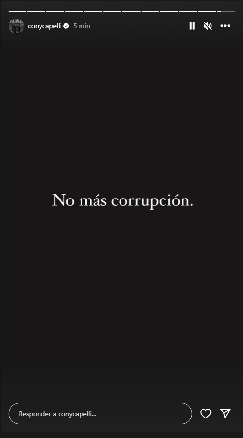 Tras esto, la ex participante del reality escribió un breve mensaje, donde se leía “No más corrupción”. El llamado fue acompañado de una icónica canción de Inti-Illimani, "El pueblo unido jamás será vencido".