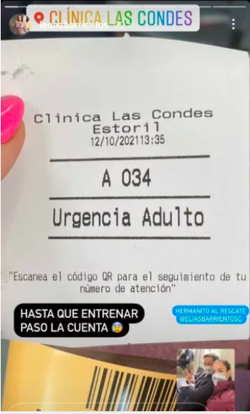 “Hasta que entrenar pasó la cuenta”, escribió la influencer. Posteriormente, difundió un video en sus redes sociales entregando detalles respecto al motivo de su visita al recinto médico.