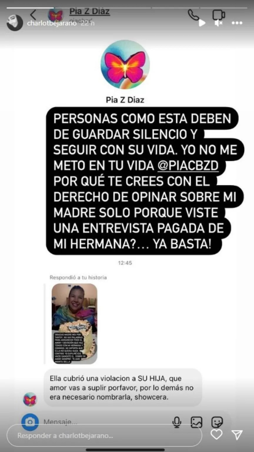“Personas como estas deben de guardar silencio y seguir con su vida, yo no me meto en tu vida. Por qué te crees con el derecho de opinar sobre mi madre solo porque viste una entrevista pagada de mi hermana… ya basta”, escribió la joven.