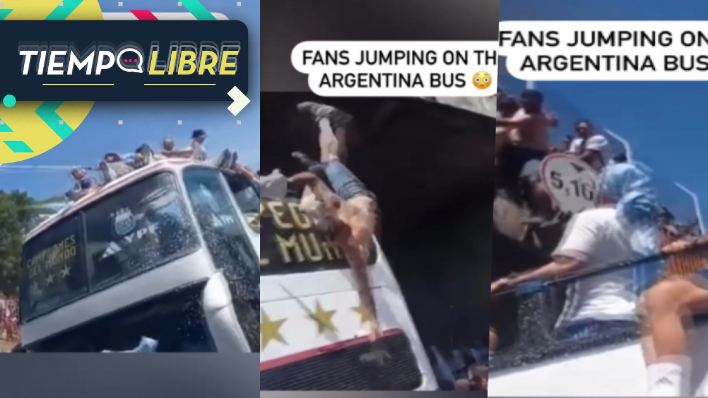 Sin embargo, las festividades no estuvieron excentas de riesgos, como se ve en un video que comenzó a circular en redes sociales, donde un hincha argentino cayó desde un puente de una carretera, con 5.1 metros de altura, cuando estaba pasando un bus con personas en su exterior.