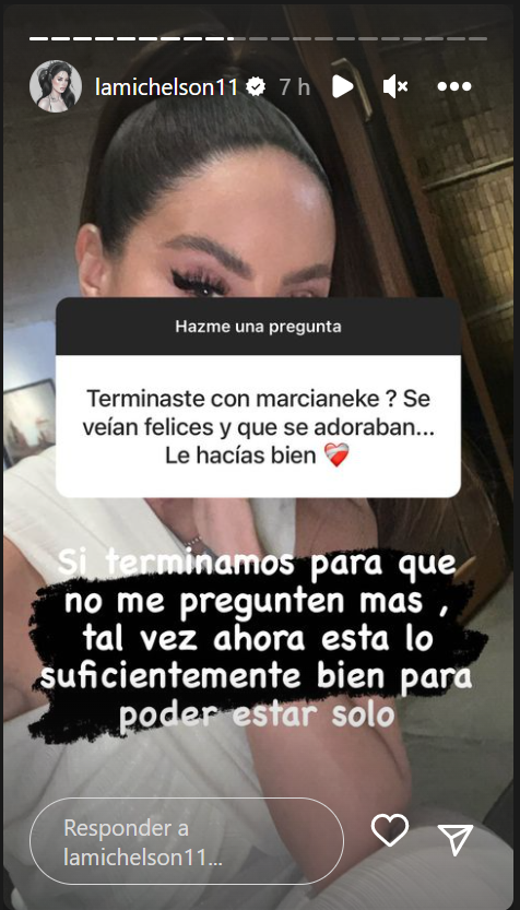 En la misma dinámica con sus seguidores, la ex chica reality fue consultada por el quiebre: “Terminaste con marcianeke? Se veían felices y que se adoraban… Le hacías bien”.