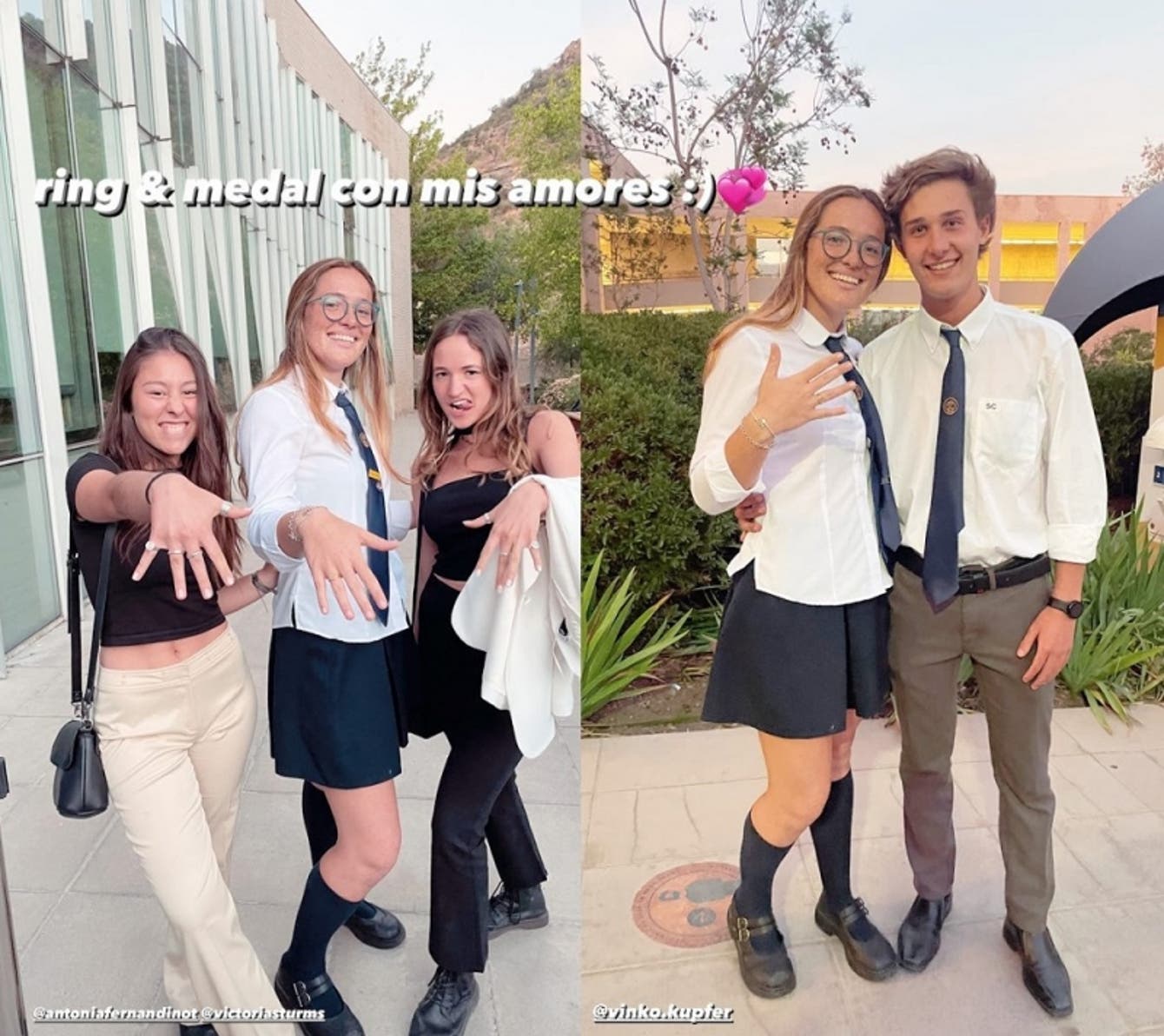 A través de sus redes sociales, los hijos de Cecilia Bolocco y Carlos Menem; y Angélica Castro y Cristián de la Fuente compartieron registros de la importante ceremonia académica en su colegio, donde incluso aprovecharon de desordenarse y cambiarse el uniforme.