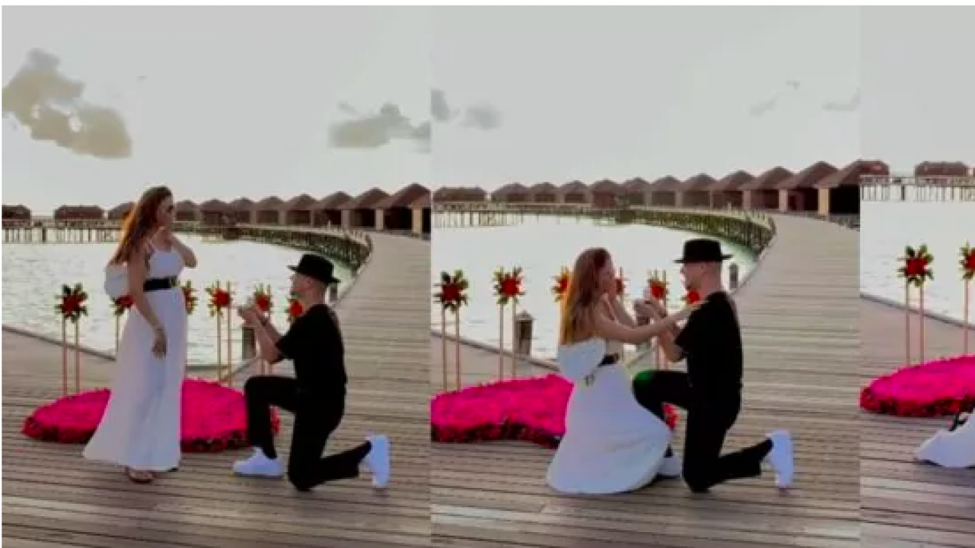 La modelo cubana compartió un romántico video que registra el momento exacto cuando el miembro de los ‘Power Peralta’ le pidió matrimonio en medio de sus vacaciones por Maldivas.