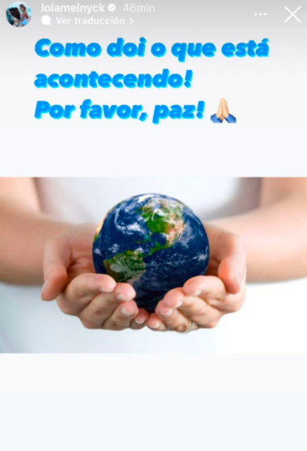 “Cómo duele lo que está pasando. Por favor, paz”, escribió en una de sus historias de Instagram, posteriormente, publicó una foto del Cristo Ortodoxo ruso con una potente reflexión: “Están aquellos ‘algunos’ que comparten un pedazo de tierra, ya que sólo pertenece al universo; que comparten el poder, luchan por el ego y el dinero. Y somos todos nosotros los que sufrimos las consecuencias y sentimos tanto dolor”.