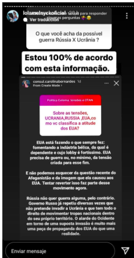 Es importante recordar que hace un par de días mientras interactuaba con sus fanáticos por medio de la dinámica de preguntas y respuestas de la plataforma digital, le consultaron si se siente más ucraniana o rusa. Ante esto, la rubia respondió: “Ambas, porque somos hermanos y hermanas. Sin embargo, tengo más etnia rusa”.