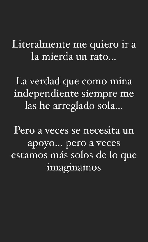 La modelo uruguaya complementó su relato con: “Literalmente me quiero ir a la mierda un rato…La verdad que como mina independiente siempre me las he arreglado sola…Pero a veces se necesita un apoyo…Pero a veces estamos más solos de lo que imaginamos”, mostrando su descontento tras perder su documentación.