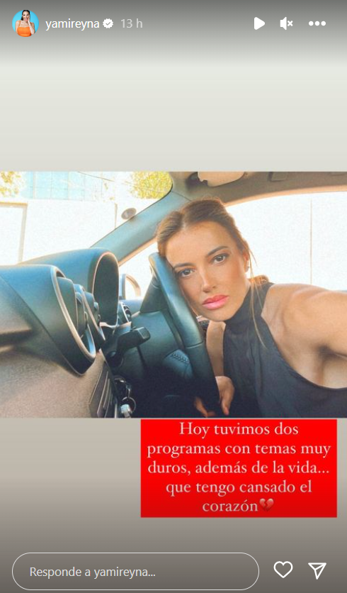 “Hoy tuvimos dos programas con temas muy duros, además de la vida… que tengo cansado el corazón”, escribió Yamila sobre una fotografía de ella al interior de un vehículo.