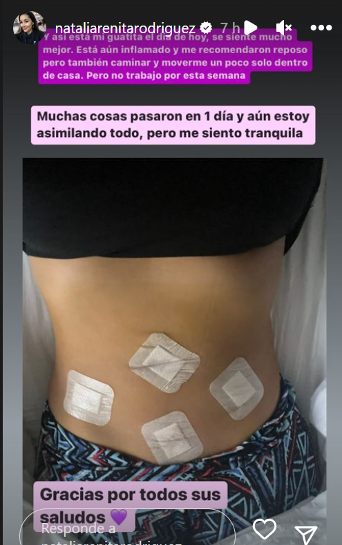 Por último, mostró una imagen de como quedó su abdomen tras la cirugía señalando que aún estaba inflamada pero que le habían recomendado reposo y caminar dentro de su casa.