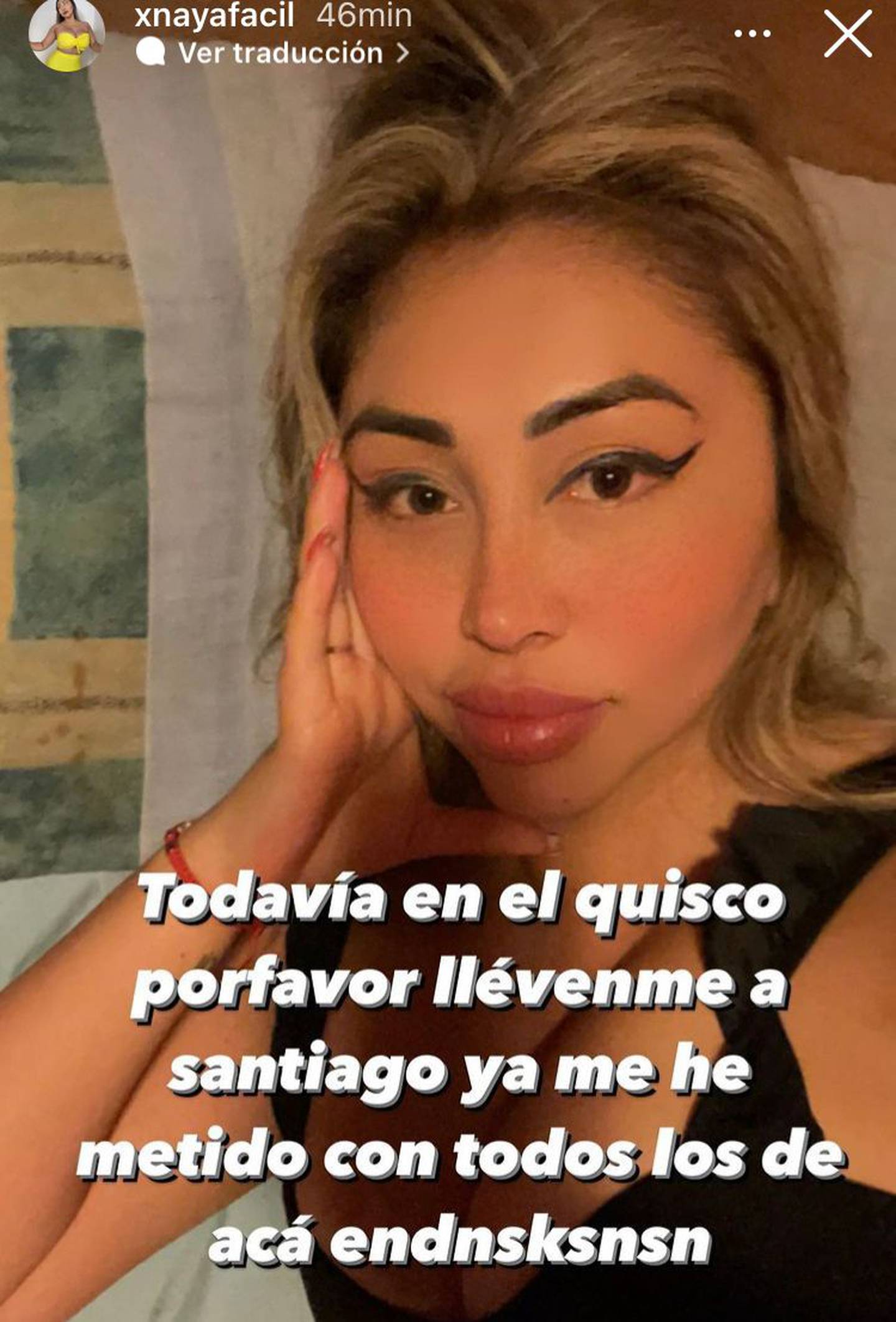 La Instagramer, que se encuentra de paseo compartiendo con amigos, reflexionó sobre su vida privada, con el siguiente mensaje: “Todavía en El Quisco, por favor llévenme a Santiago, ya me he metido con todos los de acá”. El mensaje, que fue acompañado por una 'selfie' de la influencer, generó diversas reacciones en redes sociales.