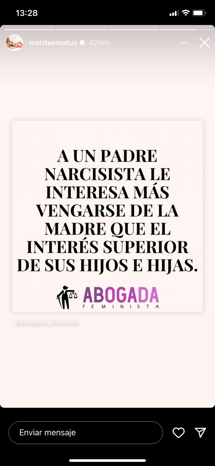 “A un padre narcisista le interesa más vengarse de la madre que el interés superior de sus hijos e hijas”, menciona el escrito de la cuenta “Abogada Feminista”.
