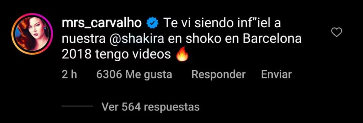 “Te vi siendo infiel a nuestra Shakira en Shoko, en Barcelona 2018. Tengo videos”, escribió la modelo generando múltiples comentarios.