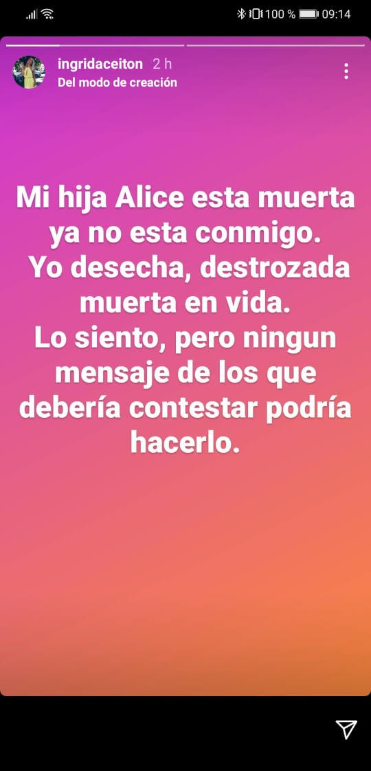 La modelo Ingrid Aceitón publicó en sus historias de Instagram una emotiva reflexión sobre la pérdida de Alice, su primer bebé.