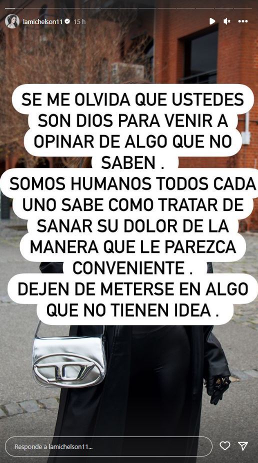 “Se me olvida que ustedes son Dios para venir a opinar de algo que no saben. Somos humanos. Todos, cada uno sabe cómo tratar de sanar su dolor de la manera que le parezca conveniente. Dejen de meterse en algo que no tienen idea”, manifestó.