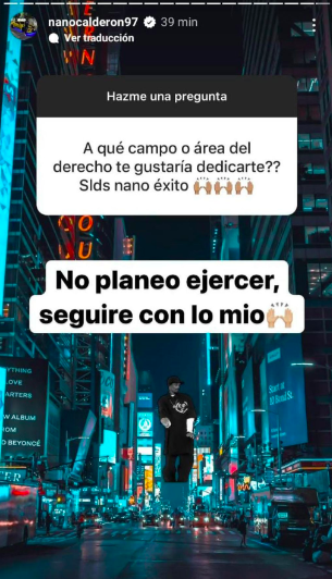 En el mismo contexto, otro usuario le consultó: “¿A qué campo o área del derecho te gustaría dedicarte?”. Ante esto, Hernán Calerón Jr respondió: "No planeo ejercer. Seguiré con lo mío”. Es decir, continuará su trabajo a través de redes sociales y su empresa de publicidad.