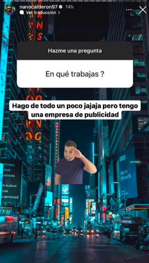Tras abrir la sección de preguntas y respuestas en la red social, el joven fue consultado en primera instancia sobre su actual trabajo: “¿En qué trabajas?”, a lo que ‘Nano’ respondió: “Hago de todo un poco, jajaja. Pero tengo una empresa de publicidad”.