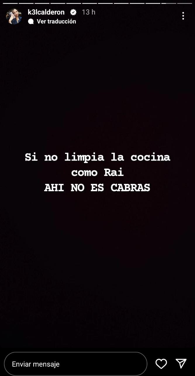 "Si no limpia la cocina como Rai, ahí no es...", escribió Kel Calderón en su cuenta de Instagram, demostrando que está impresionada con el hecho.