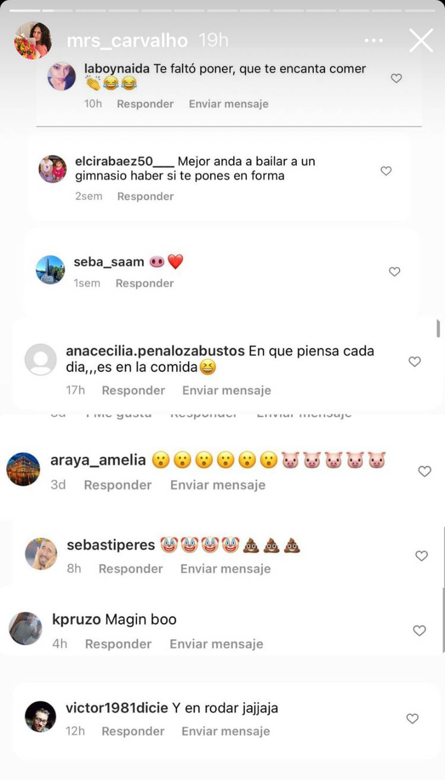 La brasileña expuso la gran cantidad de comentarios que recibe en diferentes publicaciones, los que se burlan directamente de su figura.