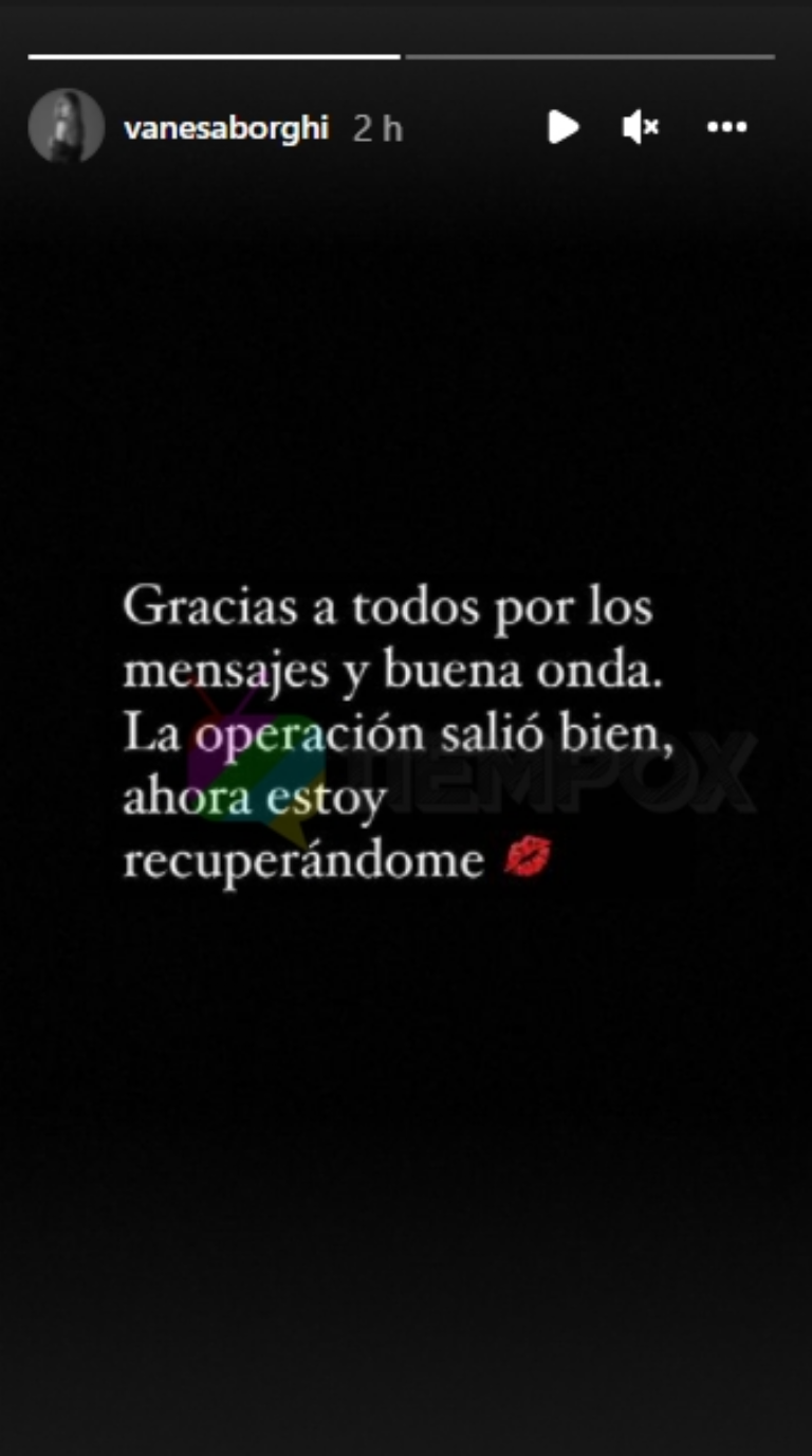 Durante el fin de semana, Vanesa Borghi comunicó a través de sus redes sociales se sometería a una operación, lo que preocupó a sus seguidores. A través de sus historias de Instagram, la figura televisiva reveló que debía internarse para extraer un mioma, un tumor que crece en el útero y que usualmente es benigno.