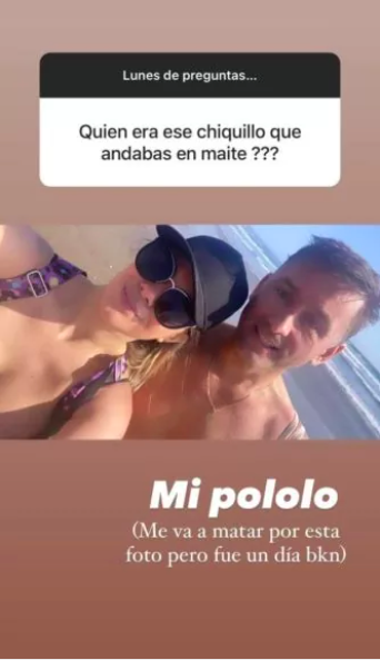 Asimismo, sus seguidores le consultaron: “¿Quién era ese chiquillo que andabas en Maite?”, a lo que ella respondió con una imagen donde muestra a su nueva conquista y señala en el texto: “Mi pololo (Me va a matar por esta foto, pero fue un día bacán)".