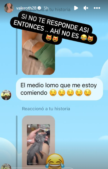 “El medio lomo que me estoy comiendo”, le escribió el joven a lo que Roth contestó “Si no te responde así entonces… ahí no es”.