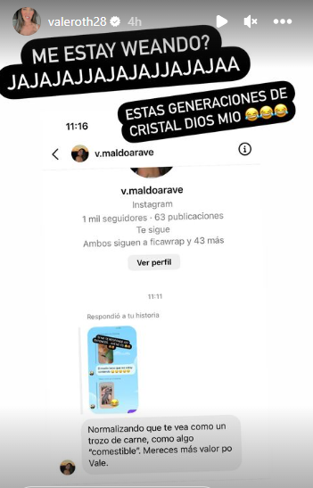“Normalizando que te vea como un trozo de carne, como algo ‘comestible’. Mereces más valor po Vale”, decía el mensaje privado.